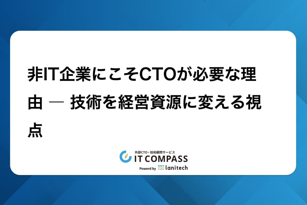 非IT企業にこそCTOが必要な理由 ― 技術を経営資源に変える視点