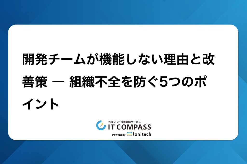 👉 IT Compassでは、外部CTO支援・CTO相談室・技術顧問サービスを通じて、幅広い企業の成長をサポートしています。お気軽に無料ヒアリングにお申し込みください。