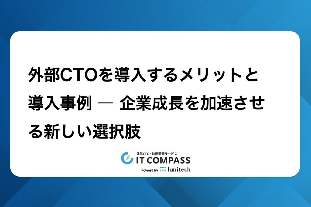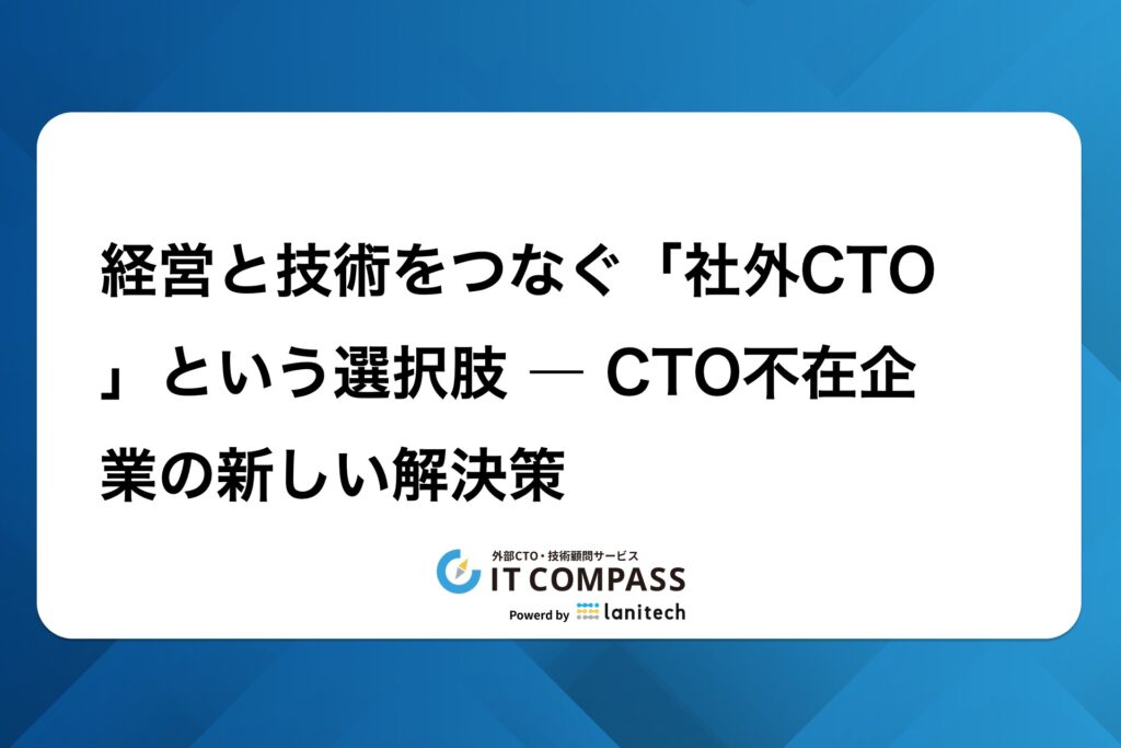👉 IT Compassでは、CTOマインドを持つ外部CTO支援を通じて、企業が「経営と技術をつなぐ力」を持てるように伴走しています。成長企業に不可欠なこの視点を、自社に取り入れたい経営者はぜひご相談ください。