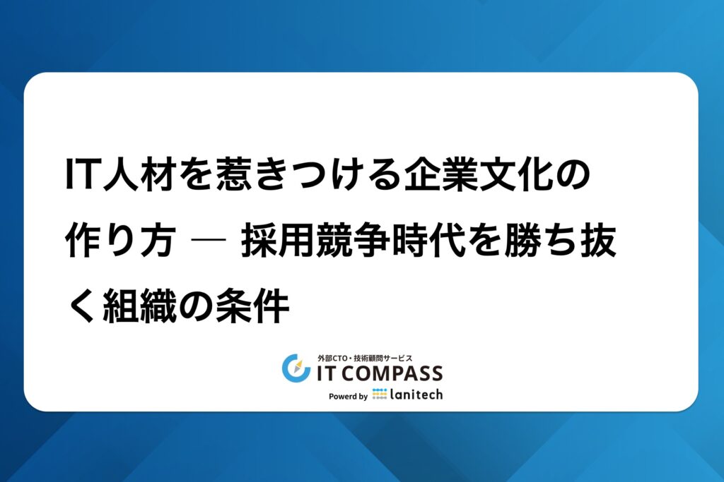 👉 IT Compassでは、開発組織構築支援・外部CTOサービスを通じて、エンジニアが定着し成長できる環境づくりをサポートしています。